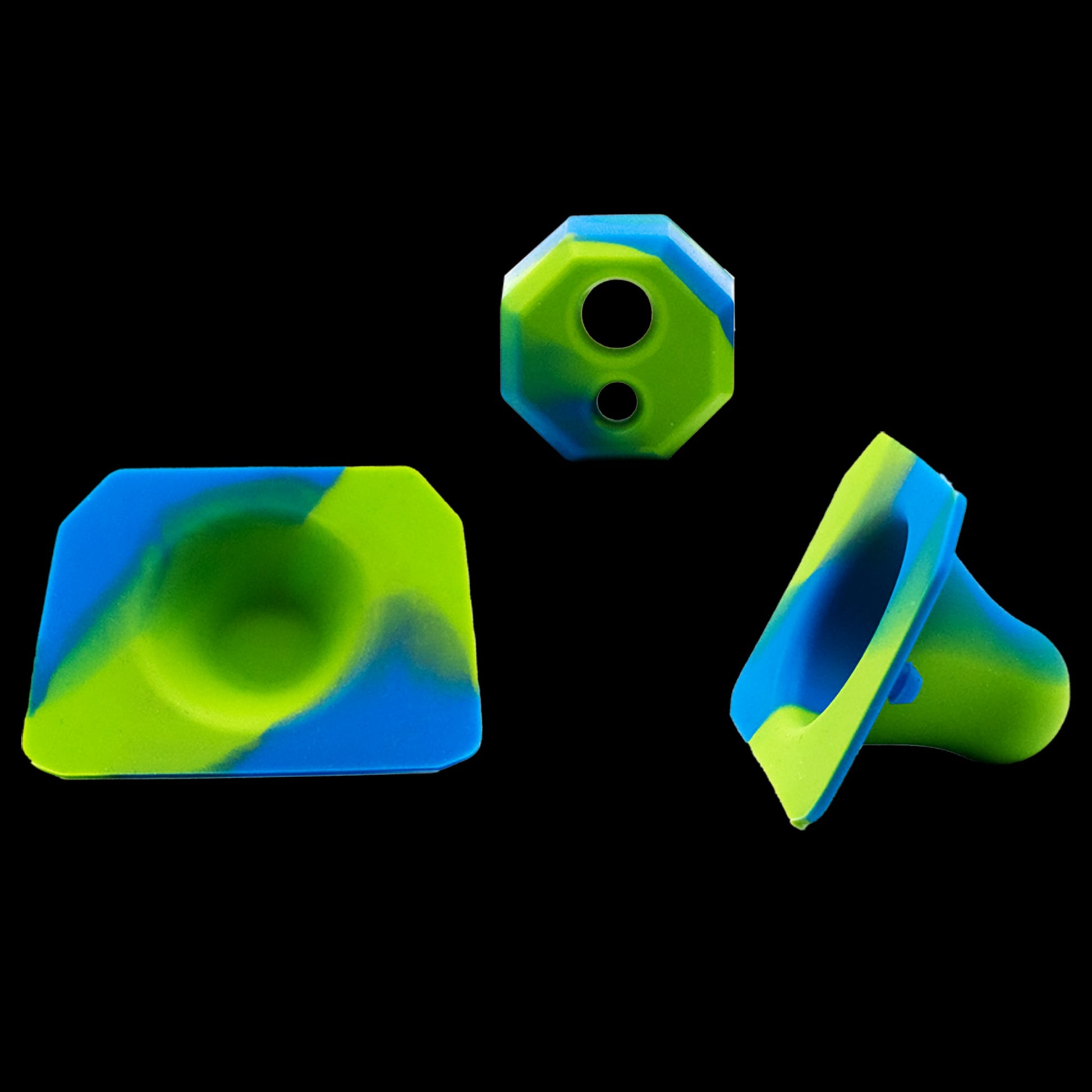 Two different cap holders: one with a deeper well designed to hold carb caps, and another with a shallower well to hold marbles