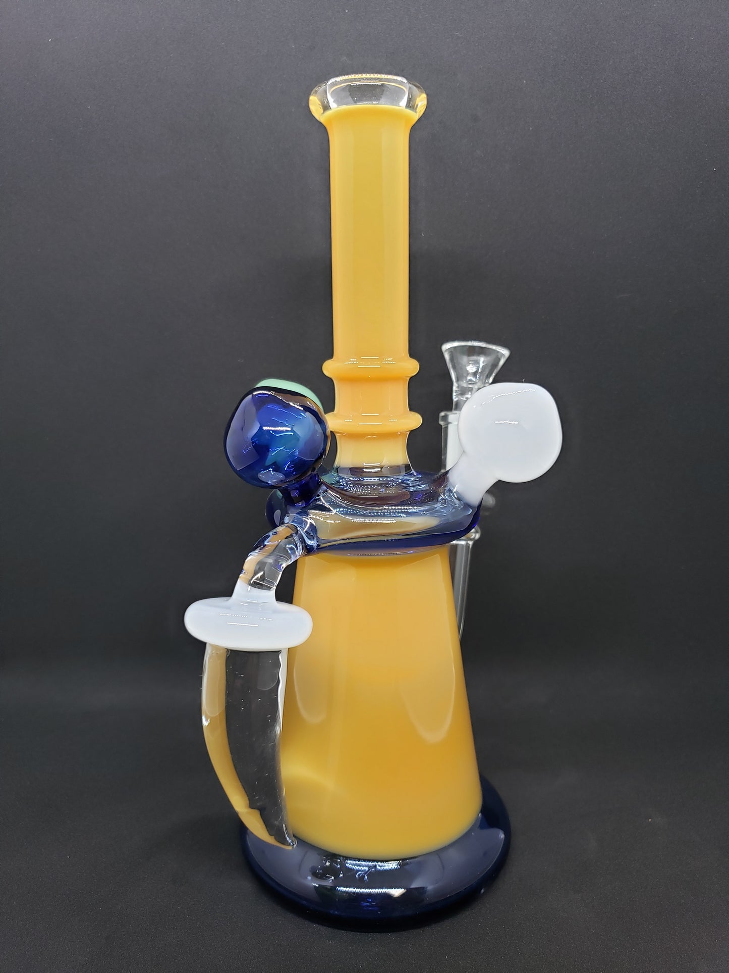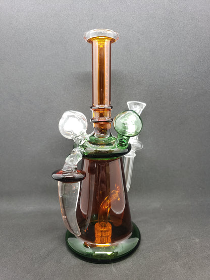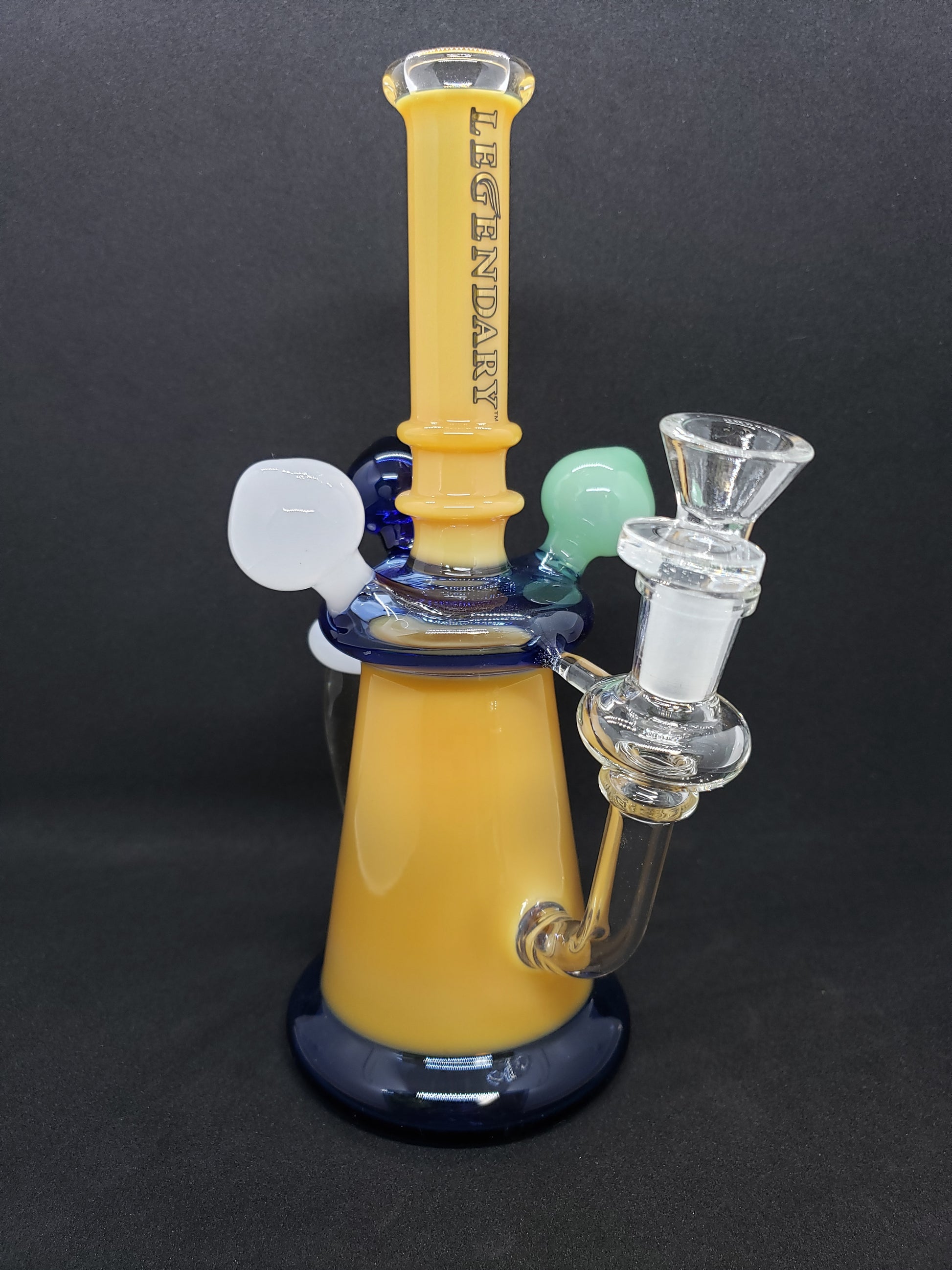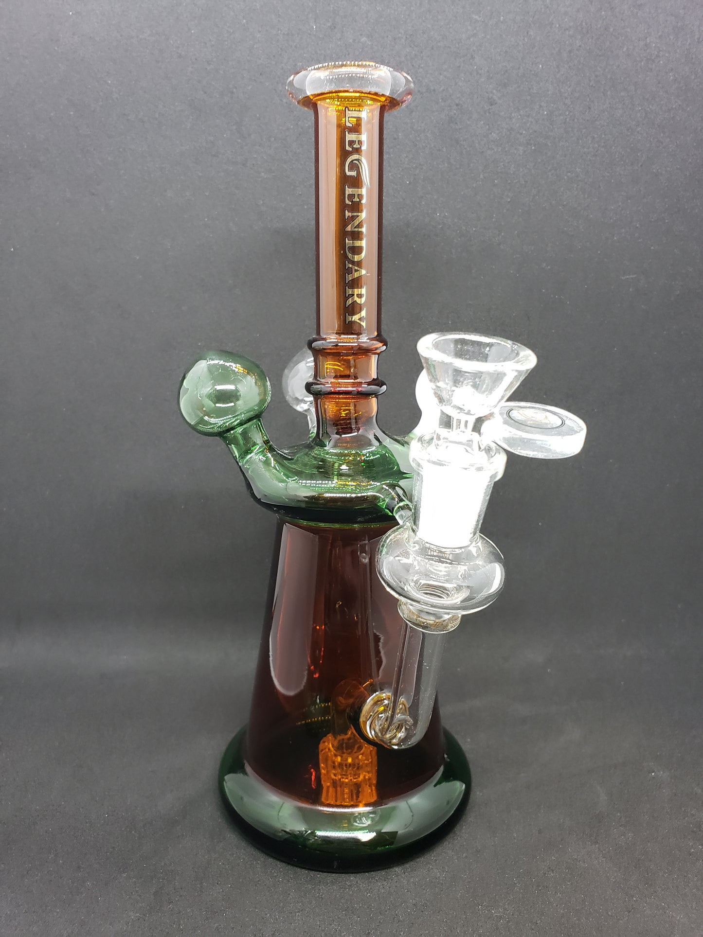 This very unique 10" Legendary tube features mushrooms growing off the top and a big heady horn hanging off the back! Comes with flower bowl