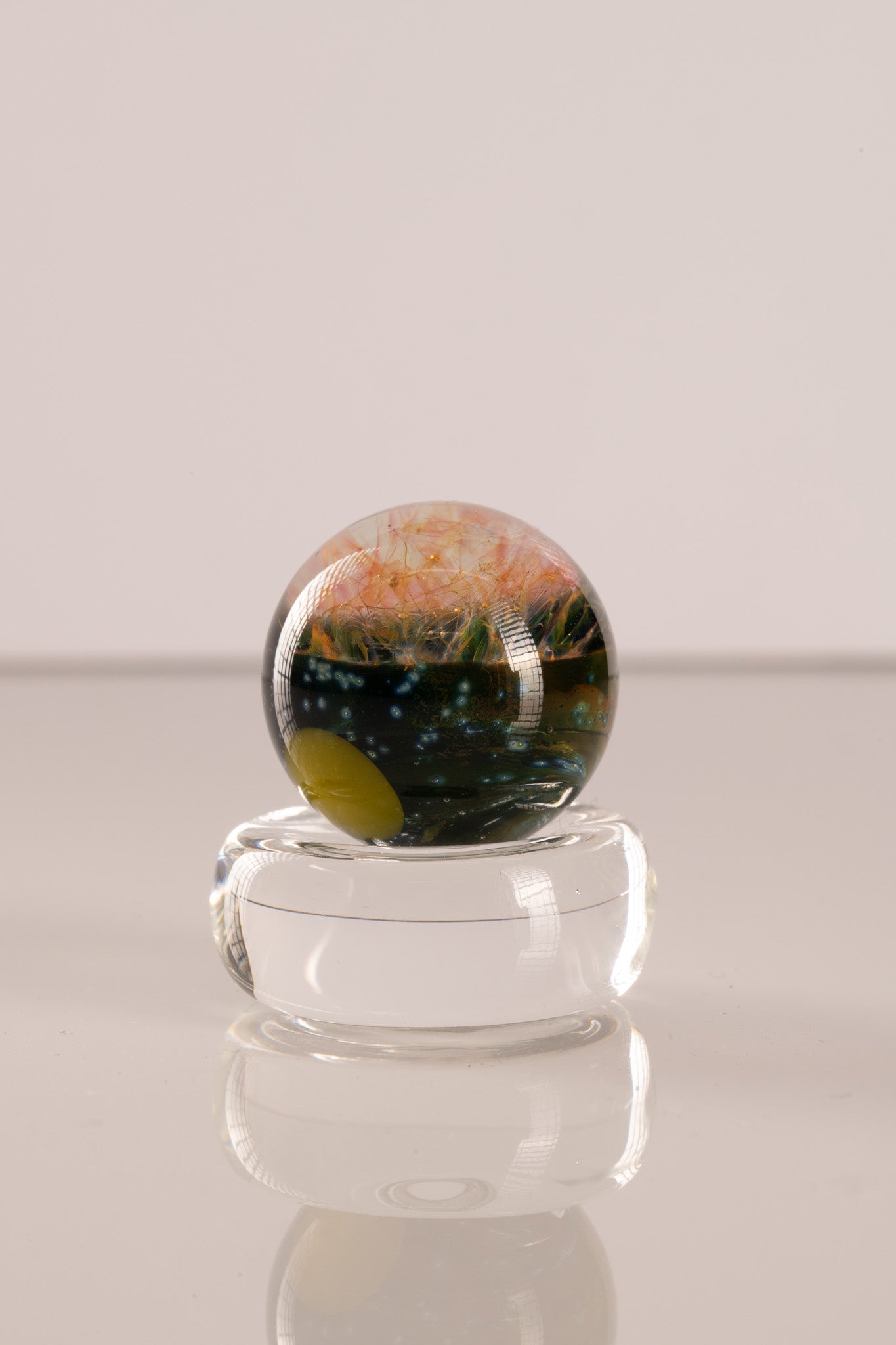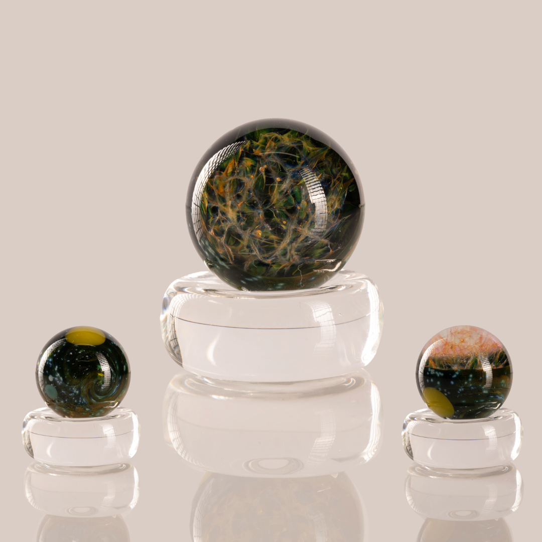 This beautiful and insanely UV-reactive marble features a crazy fumed and UV nebula, with a stunning planet and space scene on the other side! coming in at mm this mib is perfect for slurper & bottom airflow style bangers or just to add to your marble collection!