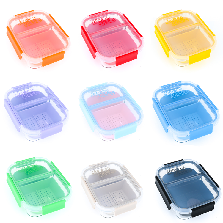 -Two compartment split container (to prevent the sides mixing when traveling)