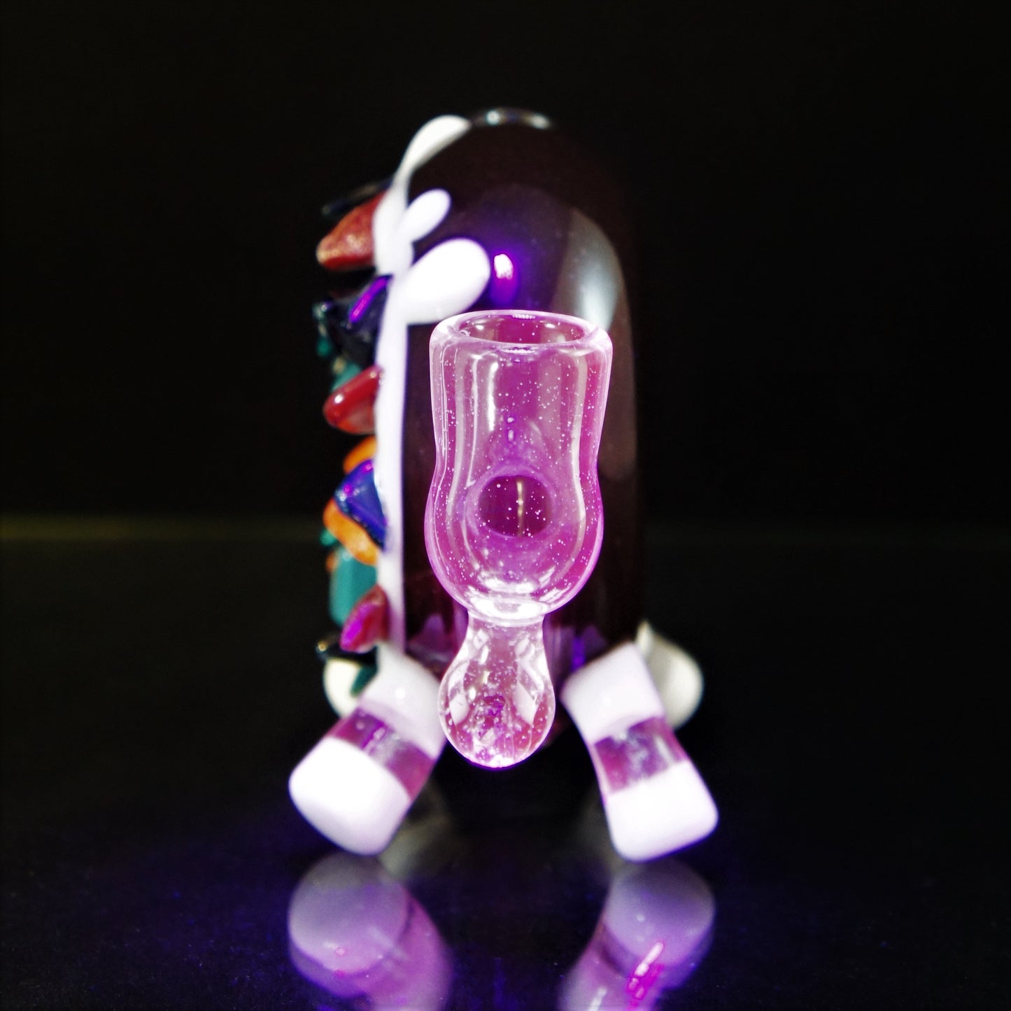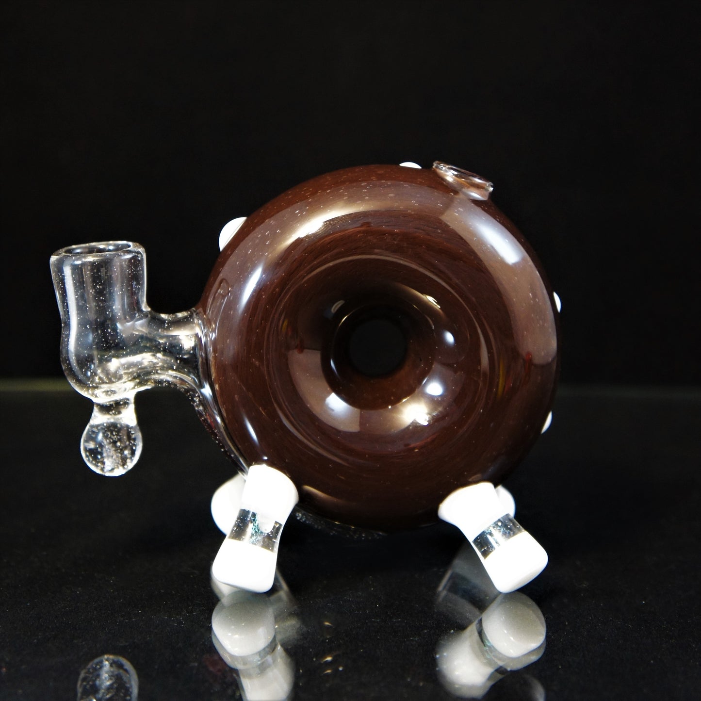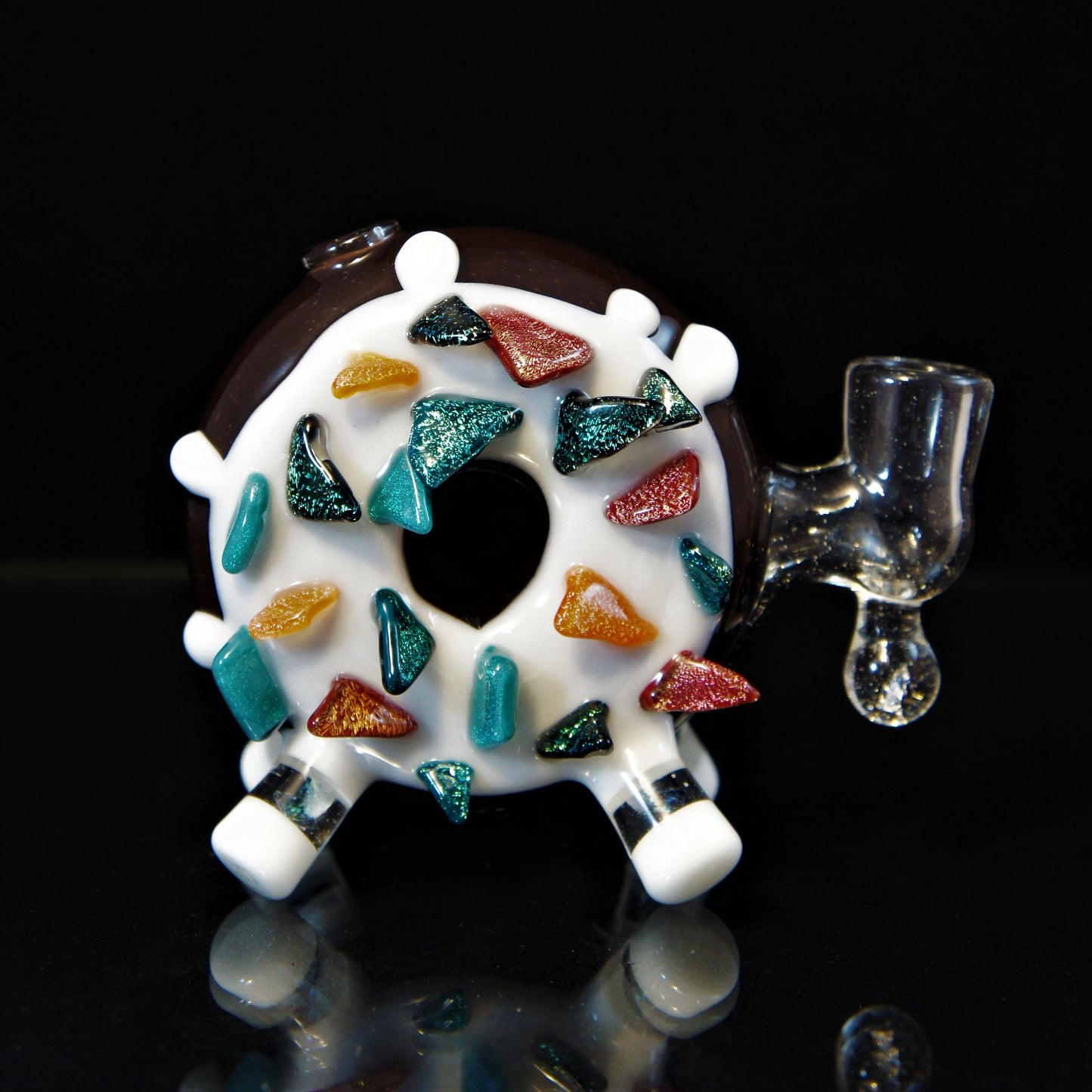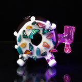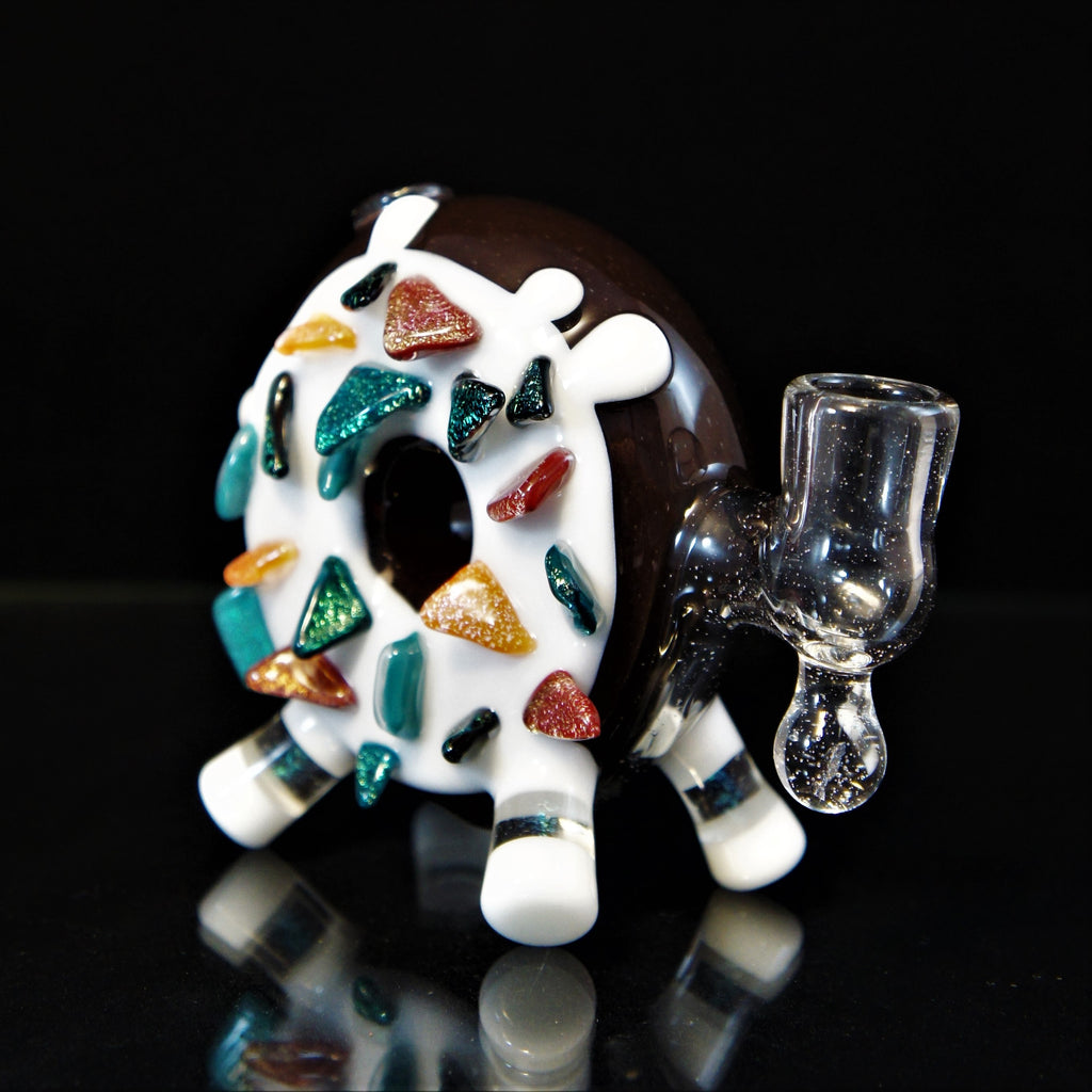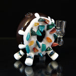 Donut worry. Be happy.Glazed and confused.Donut mind if I do. This Baller donut really shines with some insane dichro sprinkles! Super awesome function with a 14mm Uv Joint and silicone Encasement! Dont sleep on this heavy hitter of a collab, this guy will not last long at all! -14mm -Gill Perk -Heavy Dichro Sprinkles