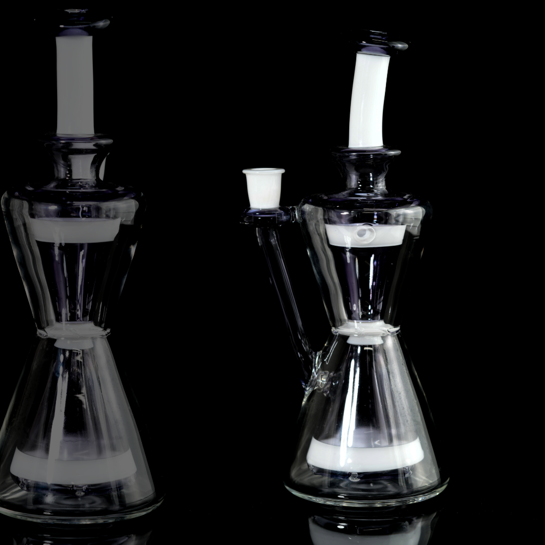 Check out this Full Zirk Glass Colander Torus Recycler, accented in Ghosted Grape & Star White! This stunning piece features a unique colander torus design for optimal function and smooth hits. The Ghosted Grape and Star White accents really help to make this piece pop. Perfect for those who appreciate innovative designs and high-quality craftsmanship, this recycler will be a standout addition to any glass collection. Proudly made in B.C Canada!