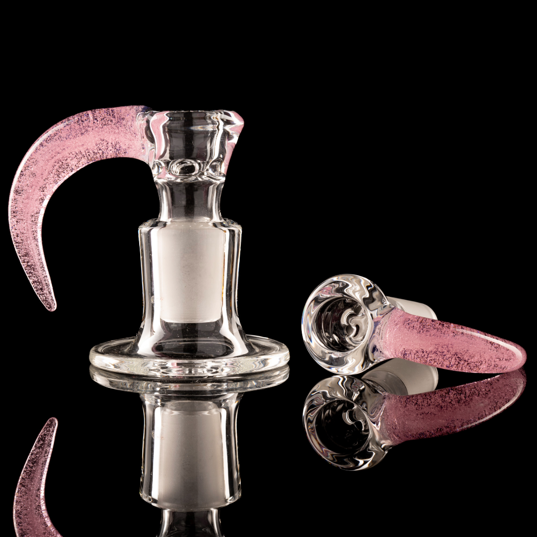Green Belt Glass is well known as one of the best in Canada! From super-clean, functional tubes to complex, worked pieces, he can do it all! Made right here in Canada! These 18mm 4-hole colour-accented slides are no exception, bringing some killer bang for the buck to the table!