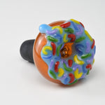 Jambear crushed this super heady 18mm Push bowl style full on donut bowl! The work is intense on this bowl! Featuring a 18mm joint and 4 hole screen