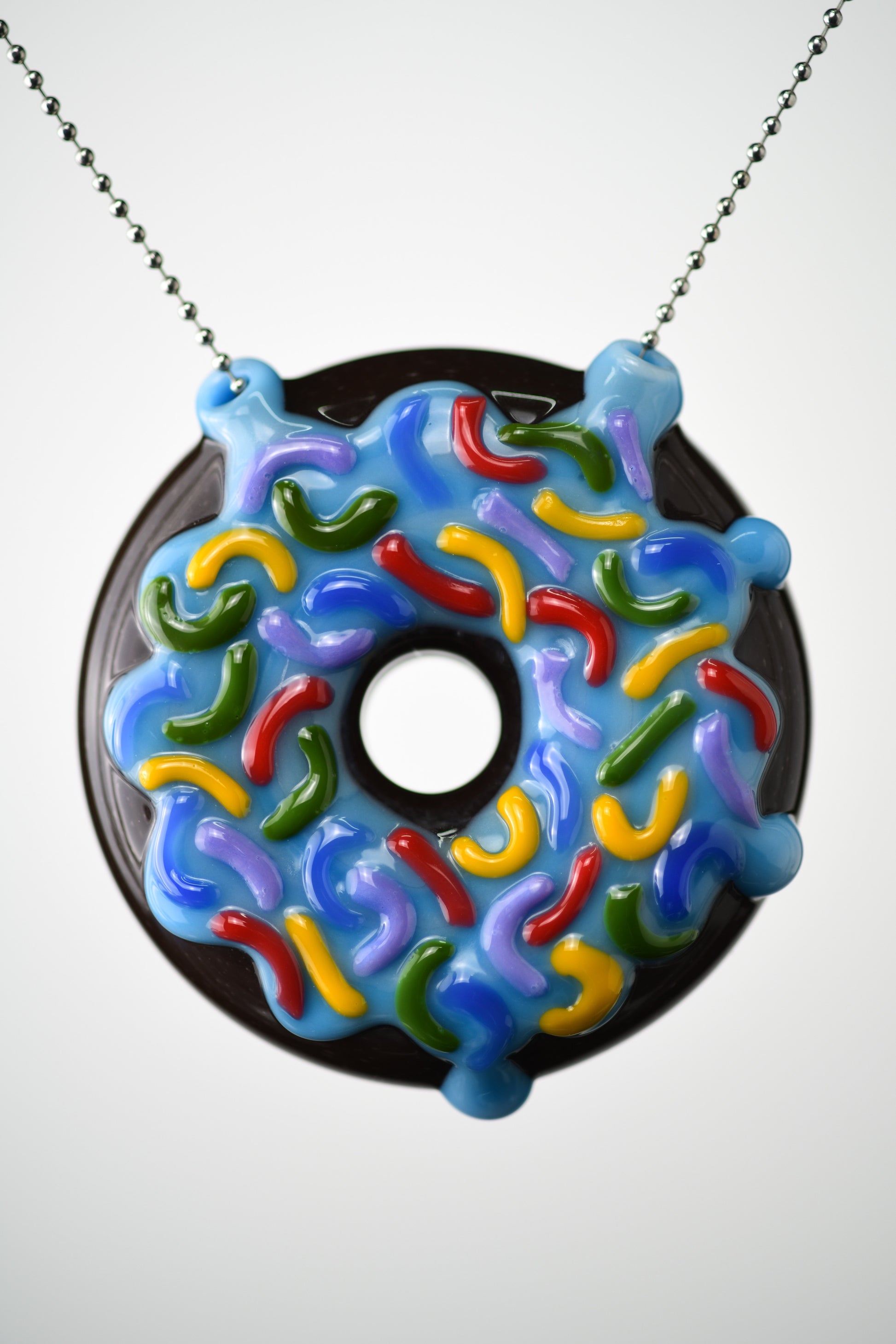 This 1/1 Full sized donut medallion is for the real donut lovers! This piece is huge like legit the same size as a full size donut and demands authority, flex on everyone with this monster of a pendant! This is by far the biggest pendant we have right now! Jambear always comes correct with super clean, colourful and functional work! Produced proudly in Bc Canada!