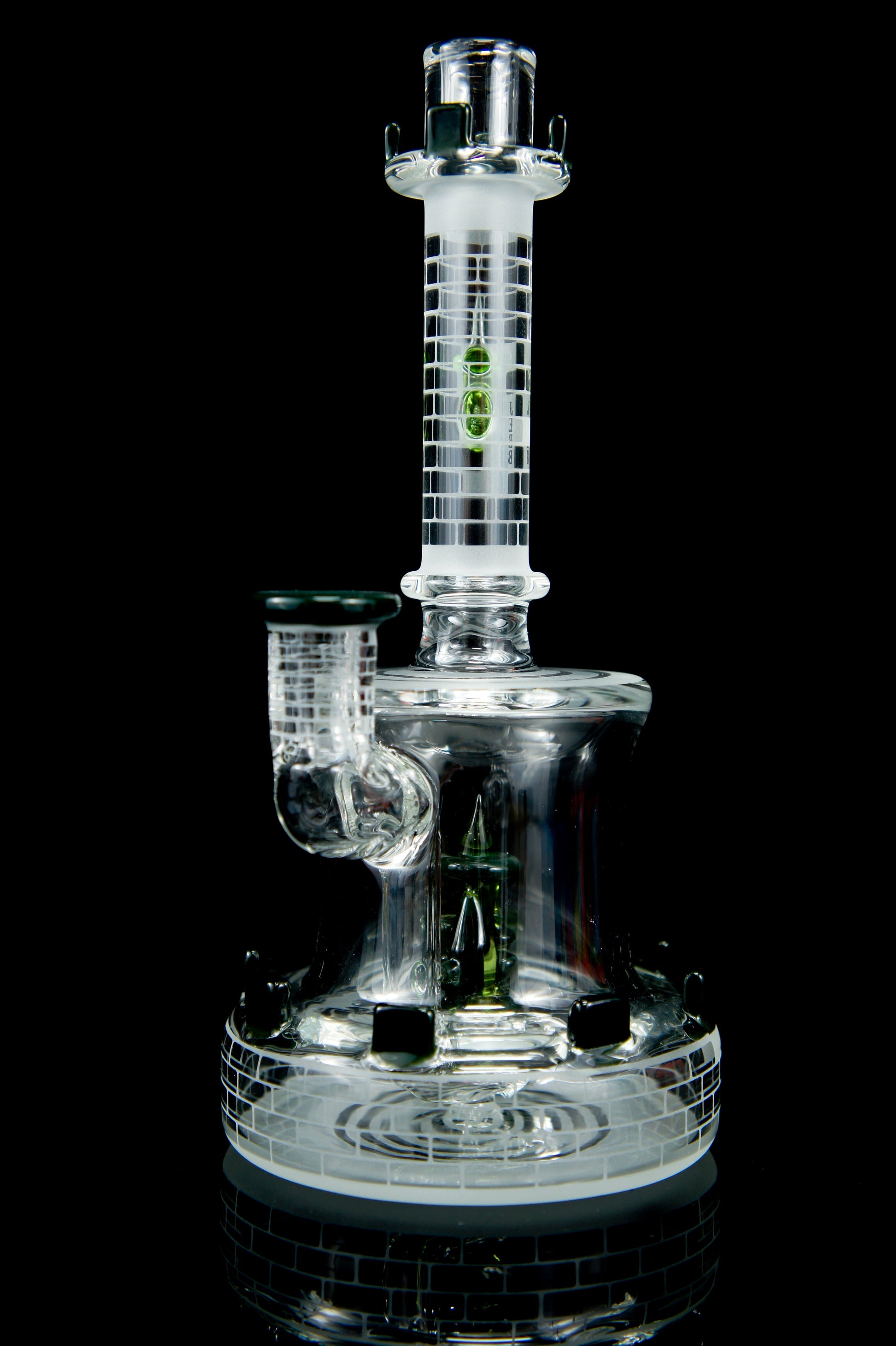 Jebb is one of the most famous torch workers in the scene, start building your kingdom today with this insane "Castleception" Piece! Jebbs been crushing Castles now for over 14 years and everyone is special! This 1/1 fully sculpted Castleception is done in Clear on the outside with blasted accents, coloured accents and a baby castle tucked inside for the perc!! We are super excited to bring these stunning castles to Canada! -Signed, Numbered -"Castleception" Perc Style -Fully Sculpted -10mm Joint -Blasted Brick Work