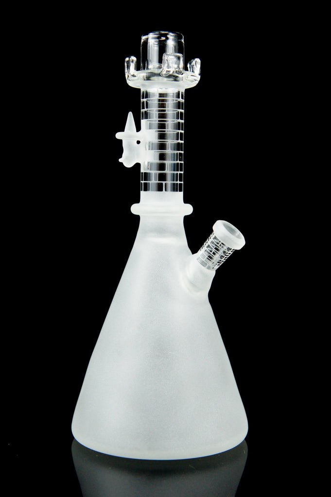 Jebb is one of the most famous torch workers in the scene, start building your kingdom today with one of these ultra affordable Jebbs Clear Mini Beakers! Jebbs been crushing Castles now for over 14 years and everyone is special! These Mini Jammers are signed, numbered and dated and blasted! Each one also feature castle accents and a 10mm joint! -Signed, Numbered and Dated -Sand Blasted -Castle Sculpted Accent -10mm Joint