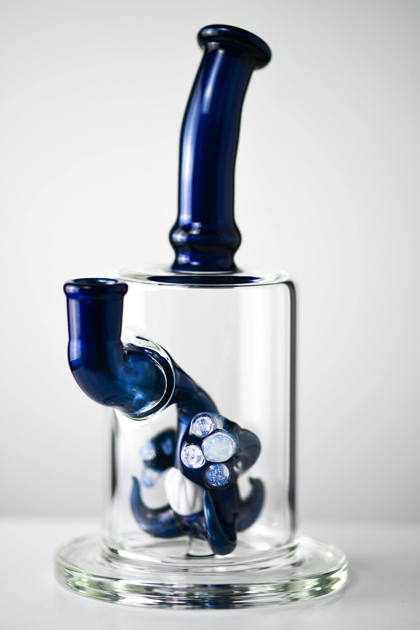 Kahuna always comes correct and this electric blue velvet bottle rig goes super hard! This piece features a 14mm full colour hand formed joint with some insanely dense blue velvet action and has a scalien as the perc!