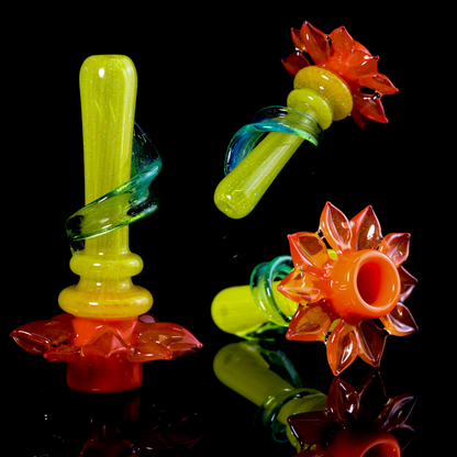 Experience the ultimate chill with Laceface's Flower Chillum! This stunning piece features dichro tubing from dream tubing glassworks, expertly sculpted into a beautiful flower design. Enjoy a smooth and flavorful smoke every time with Laceface's high quality and unique craftsmanship.