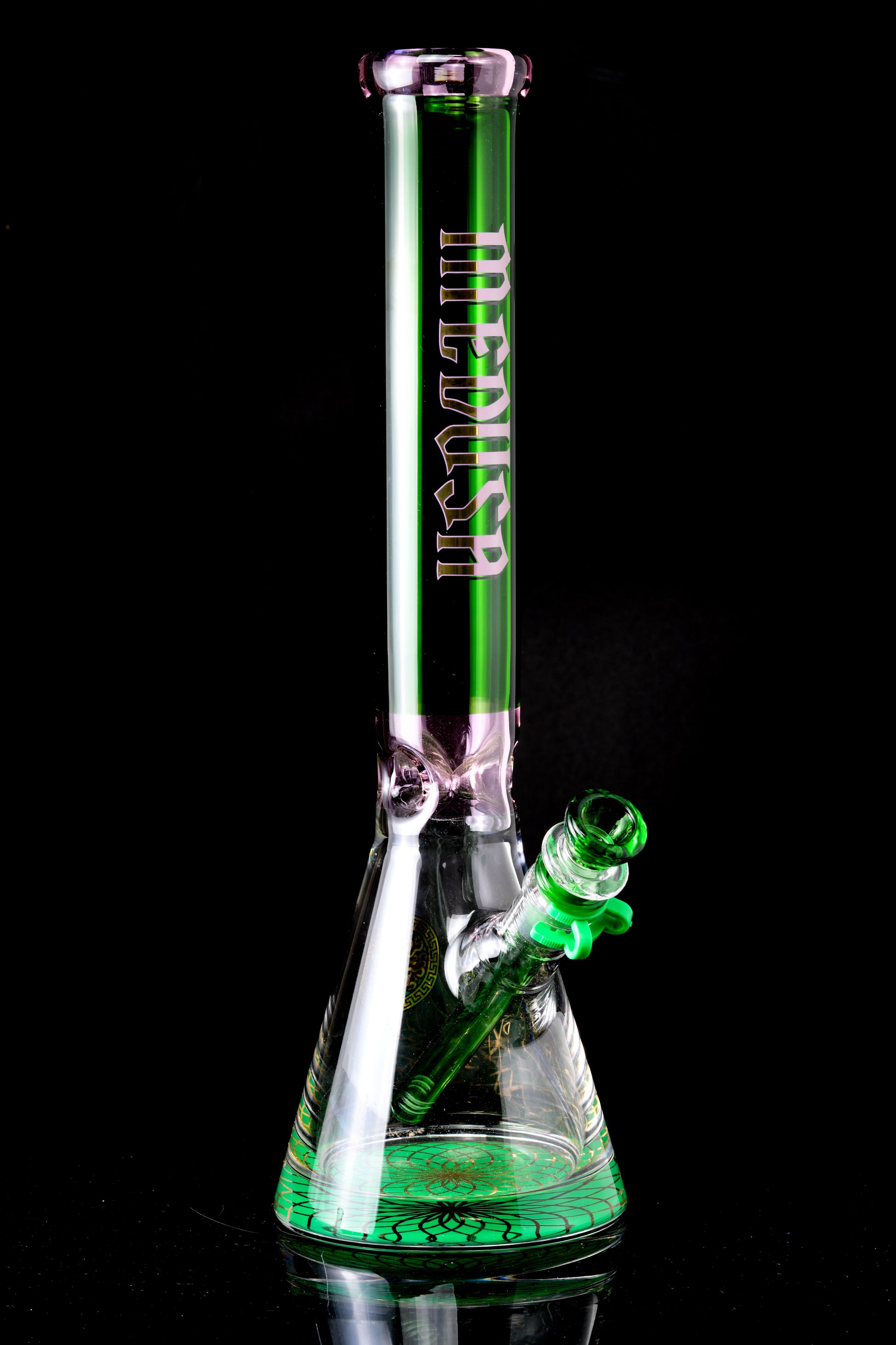 The 16" Full Colour Neck Beaker Bong by Medusa is a stylish and functional smoking accessory. This beaker bong stands at 16 inches tall and features a vibrant full-color neck that adds a touch of personality to your smoking experience. The bong is equipped with a 14mm bowl, providing a convenient and versatile smoking setup. Medusa is known for producing high-quality glassware, and this beaker bong is likely to offer a smooth and enjoyable smoking experience while also serving as an eye-catching piece in your collection.