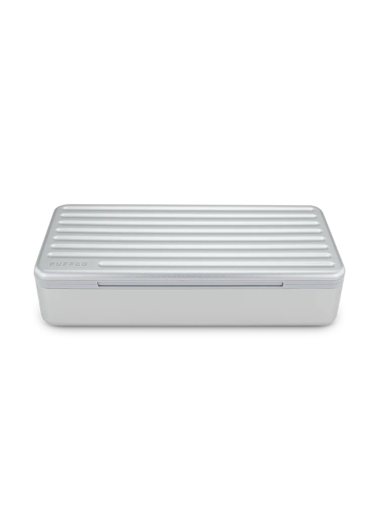 The Travel Case keeps your stash organized. Featuring a ridged hard aluminum exterior with a magnetic lid closure and soft silicone inside to reduce rattling, the Travel Case has room for a Pivot + Hot Knife, up to 3 jars, cotton swabs, a covered section for trash, and anything else you might need.