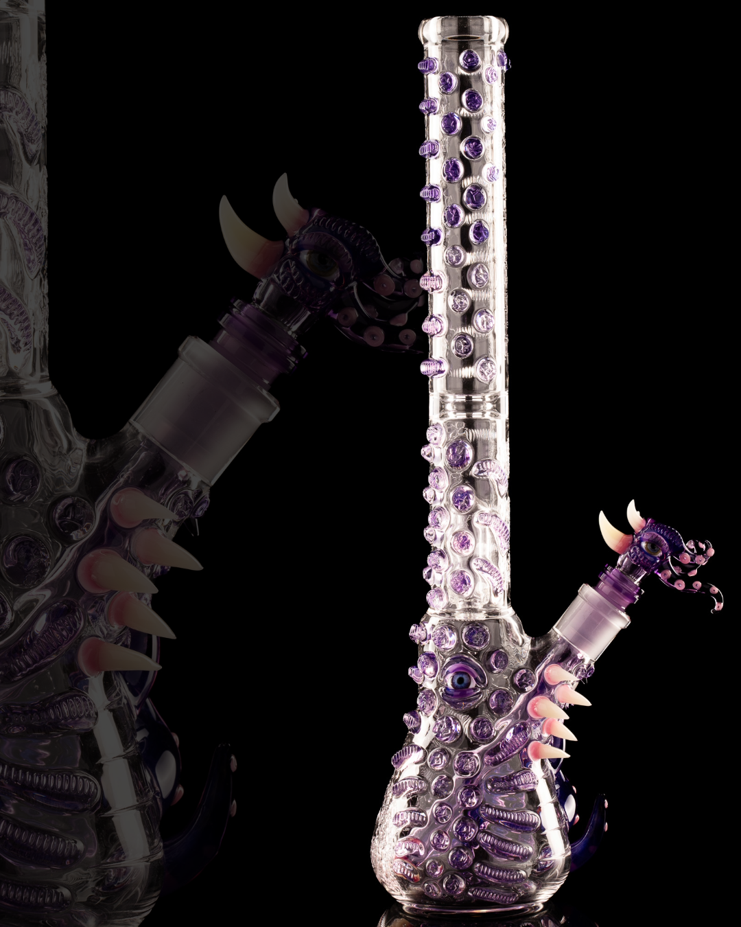 Salt got his hands on this Governmint Bell Bottom beaker and absolutely went to town. This piece features Salt's insane sculpting skills on pretty much every inch of it and is topped off with a matching 3-hole Salt 14mm slide and Salt x Stephan Pierce downstem. The perfect tube for any serious collector!